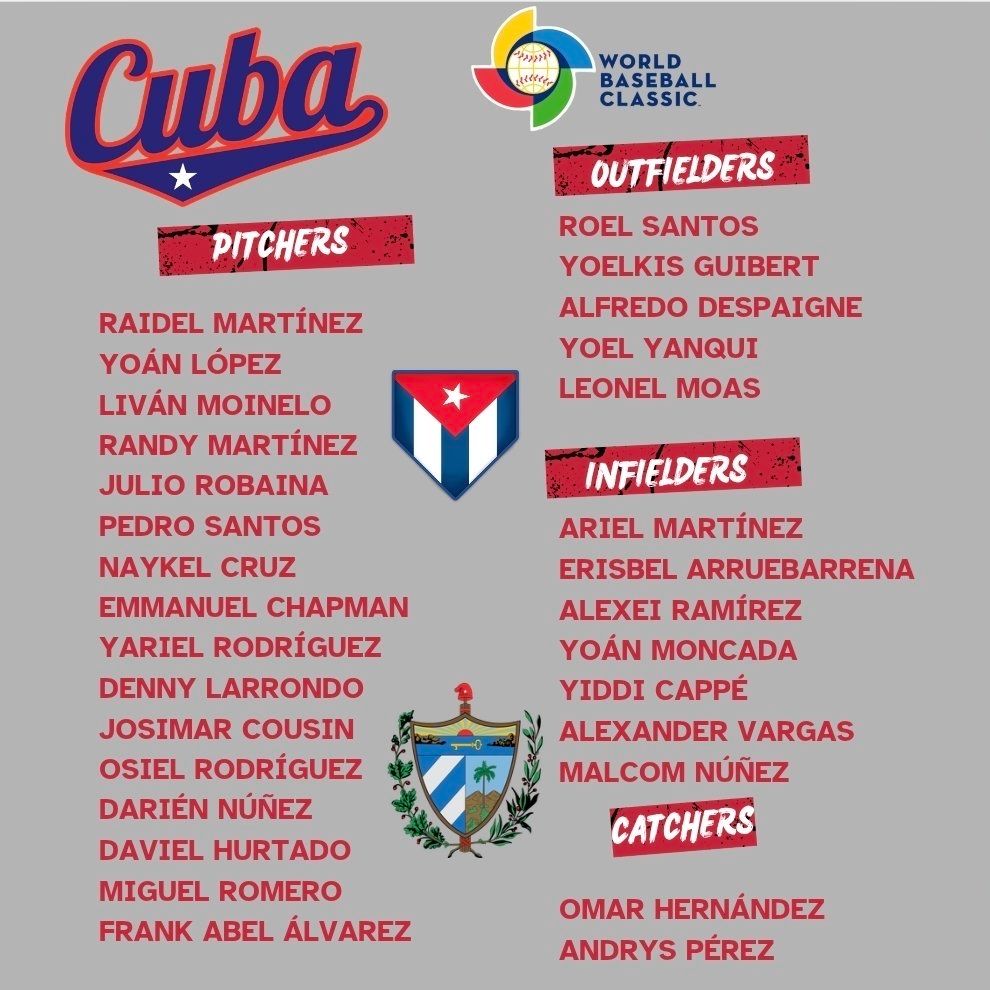 投手: Raidel Martinez Yoan Lopez Livan Moinelo Randy Martinez Julio Robaina Pedro Santos Naykel Cruz …38F 28推