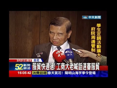 面對反服貿的抗議行動,工商大老紛紛表態,東元集團會長黃茂雄表示,先讓協議過了再說,有問題後續慢慢談,才不會傷害台灣形象,商總前理事長張平沼則說,台灣不能怕被競爭,如開放美容美髮,其實大陸水準落後一大截,台灣根本不需要擔心,如果服貿卡關只會造成台灣經濟邊緣化。 ...