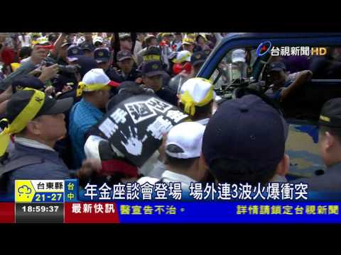 一個接一個受傷的受傷,被阻擋的被阻擋,不過只是要進去聽個年金改革會議竟然像打仗一樣,慘不忍睹。