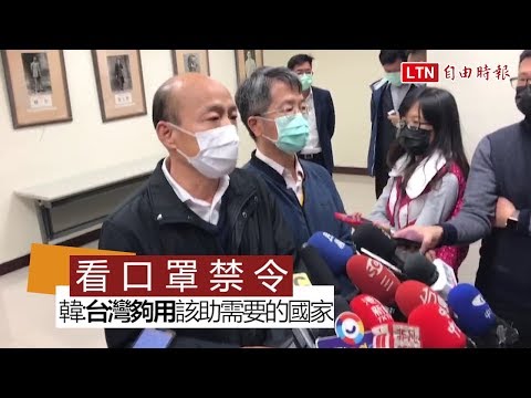 武漢肺炎全球擴散,行政院長蘇貞昌下令禁止口罩出口1個月,引發藝人口水戰,高雄市長韓國瑜今晚鬆口,首度表態「口罩只要確保台澎金馬夠用」,基於人道立場,政府應該幫助周邊有需要的國家,防疫是不分國界的,若硬性規定口罩不能出口,未必是聰明、智慧的決定, ...