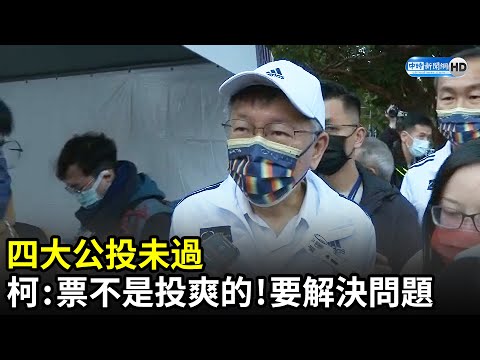 四大公投結果出爐,台北市反全國指標,4案皆同意大過不同意,台北市長柯文哲昨重轟民進黨傾國家資源宣傳、用仇恨動員,新綠色威權恐更加強大。今晨他再度發聲,要執政黨勇於面對公投結果,畢竟投票不是「投爽的」, ...