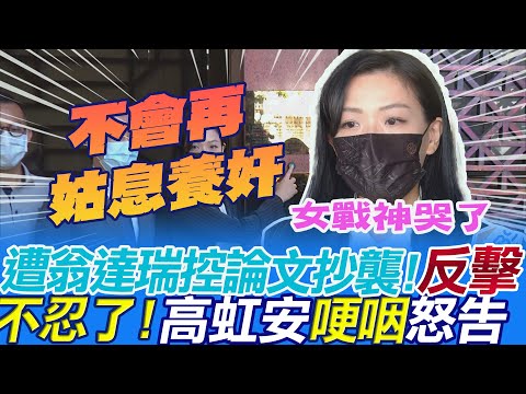 民眾黨新竹市長參選人高虹安爆出博士論文抄襲,她昨親上火線召開記者會說明,卻說出「不是像什麼中華大學夜間部,才要去台大碩士灌水」等言論,被外界砲轟歧視學歷。對此,她今(21)日接受《新聞不芹菜》專訪時,當場委屈落淚,更直接離開直播鏡頭,冷靜了幾分鐘後才回到節目現場,她更哽咽坦言,當時感到委屈、憤怒,只 ...