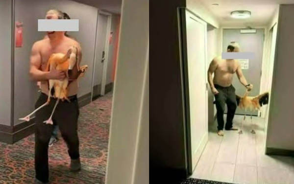 一名來自加拿大的男遊客在美國拉斯維加斯度假時,擅自闖進飯店紅鶴棲息區中偷走一隻