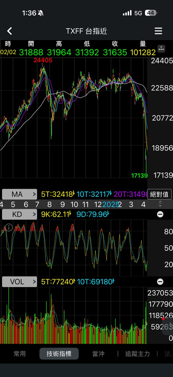 → : 撐盤狗三天撐了1200點 你覺得會跌很多?59F 02/05 14:04