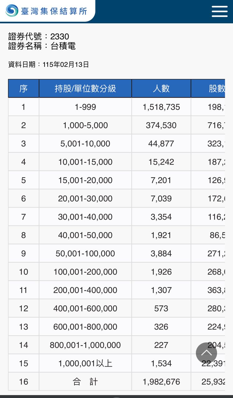 推 Muilie: 過個年,隔壁過來敬酒的說自己媽媽幾百張台積電,隔幾天路邊閒聊說鄉裡公務人員900張台積電,集保天龍榜都這麼愛炫富?15F 02/24 17:05