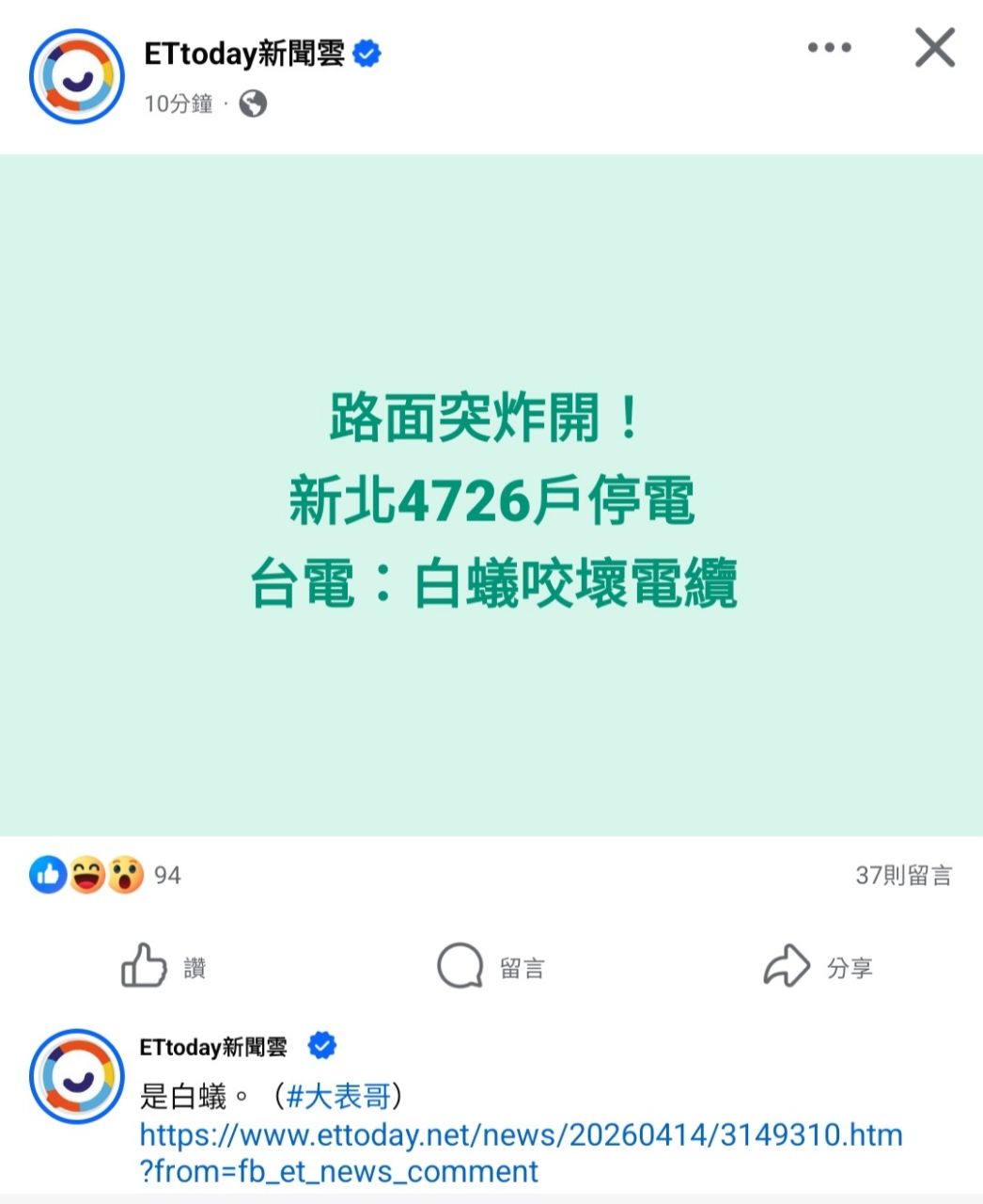 [新聞] 路面突炸開!中永和4726戶停電原因曝光 - Gossiping 板