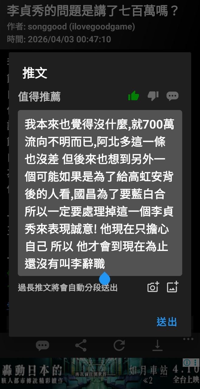 2026-04-03 21:00:33 推 hkd2: 小英的帳也不怕你查,哪像你們自己的爛帳自己都處理不好還沒會計師敢接 32F 218.164.73.34 04-03 21:07