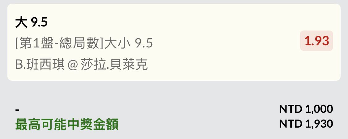 [LIVE] 網球 B.班西琪2:0莎拉.貝萊克 場中 - SportLottery 板