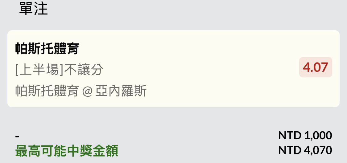 開賽馬上買。賠率真美